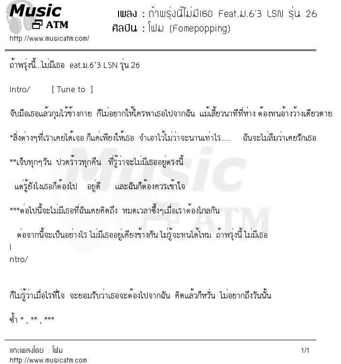 ถ้าพรุ่งนี้...ไม่มีเธอ eat.ม.6’3 LSN รุ่น 26