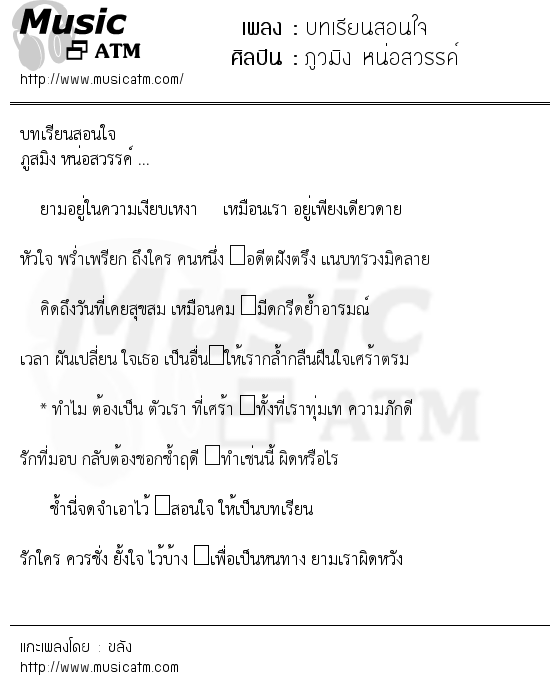 เนื้อเพลง บทเรียนสอนใจ - ภูวมิง หน่อสวรรค์