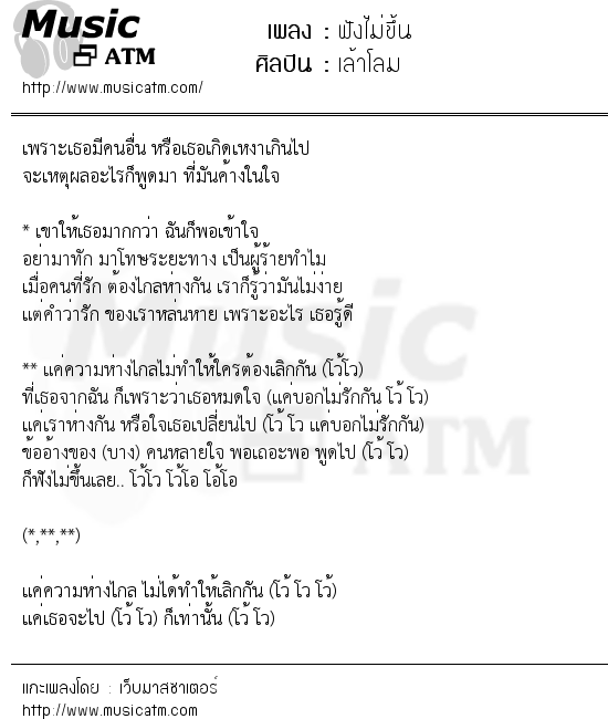 เนื้อเพลง ฟังไม่ขึ้น - เล้าโลม