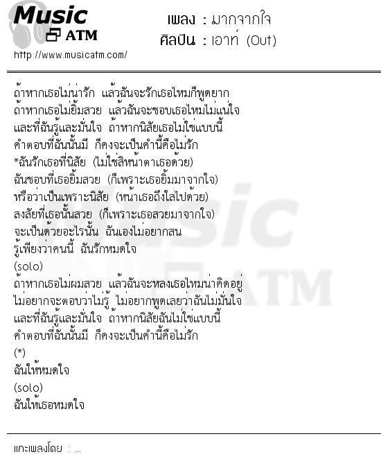 เนื้อเพลง มากจากใจ - เอาท์ (Out)