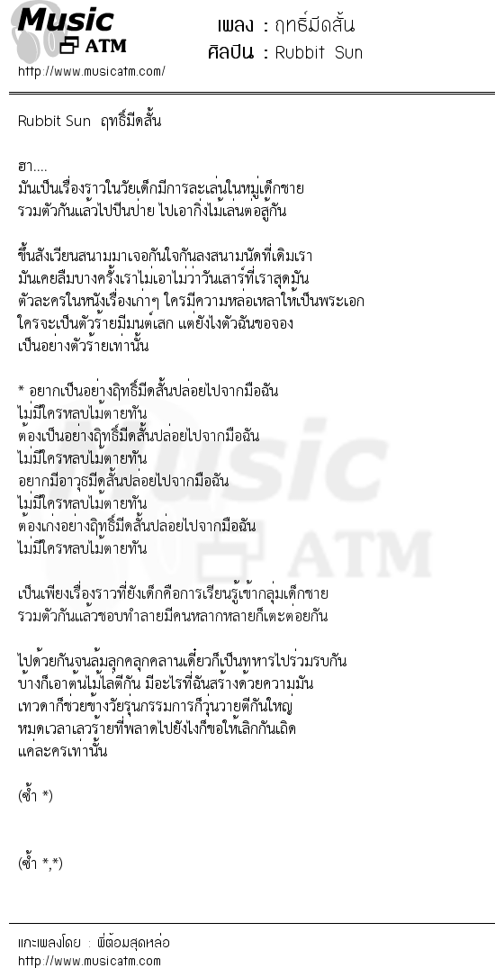 เนื้อเพลง ฤทธิ์มีดสั้น - Rubbit Sun