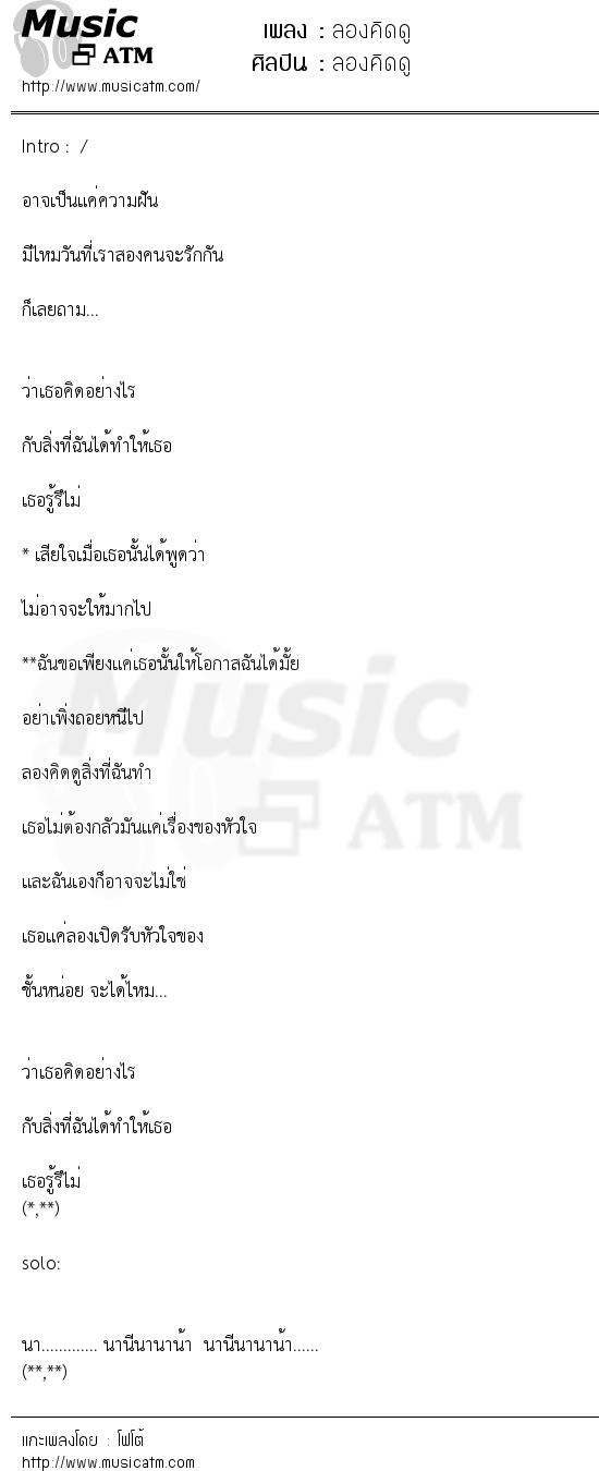 เนื้อเพลง ลองคิดดู - ลองคิดดู