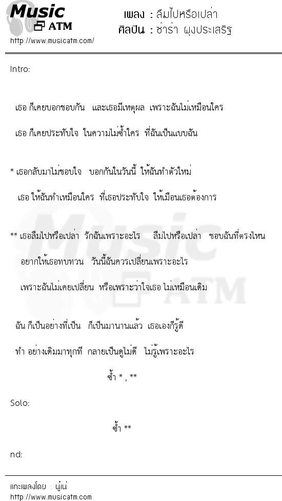 ** เธอลืมไปหรือเปล่า รักฉันเพราะอะไร ลืมไปหรือเปล่า ชอบฉันที่ตรงไหน