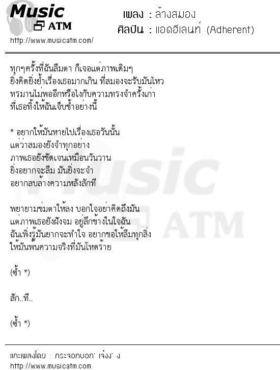 เนื้อเพลง ล้างสมอง - แอดฮีเลนท์ (Adherent)
