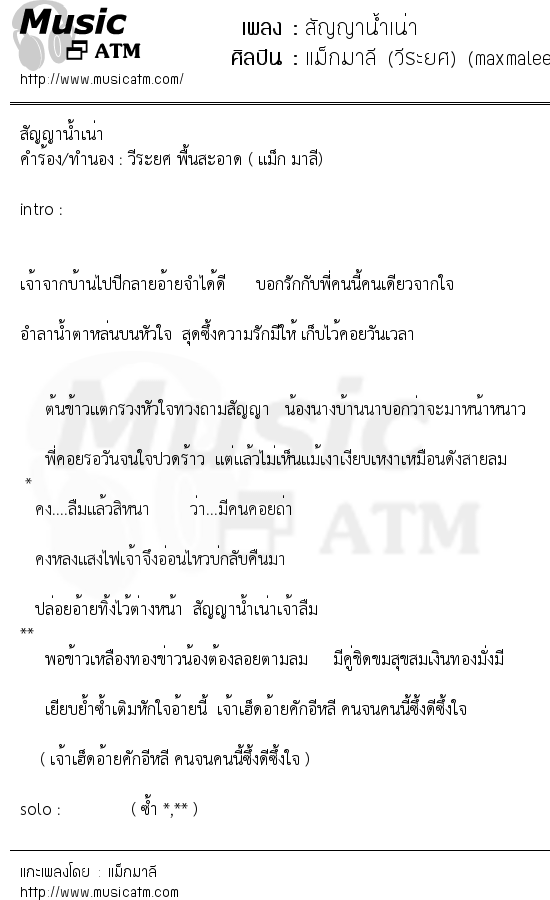 เนื้อเพลง สัญญาน้ำเน่า - แม็กมาลี (วีระยศ) (maxmalee)