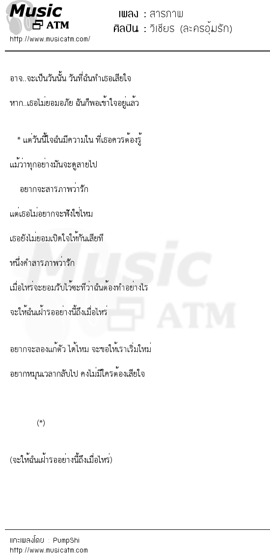 เนื้อเพลง สารภาพ - วิเชียร (ละครอุ้มรัก)