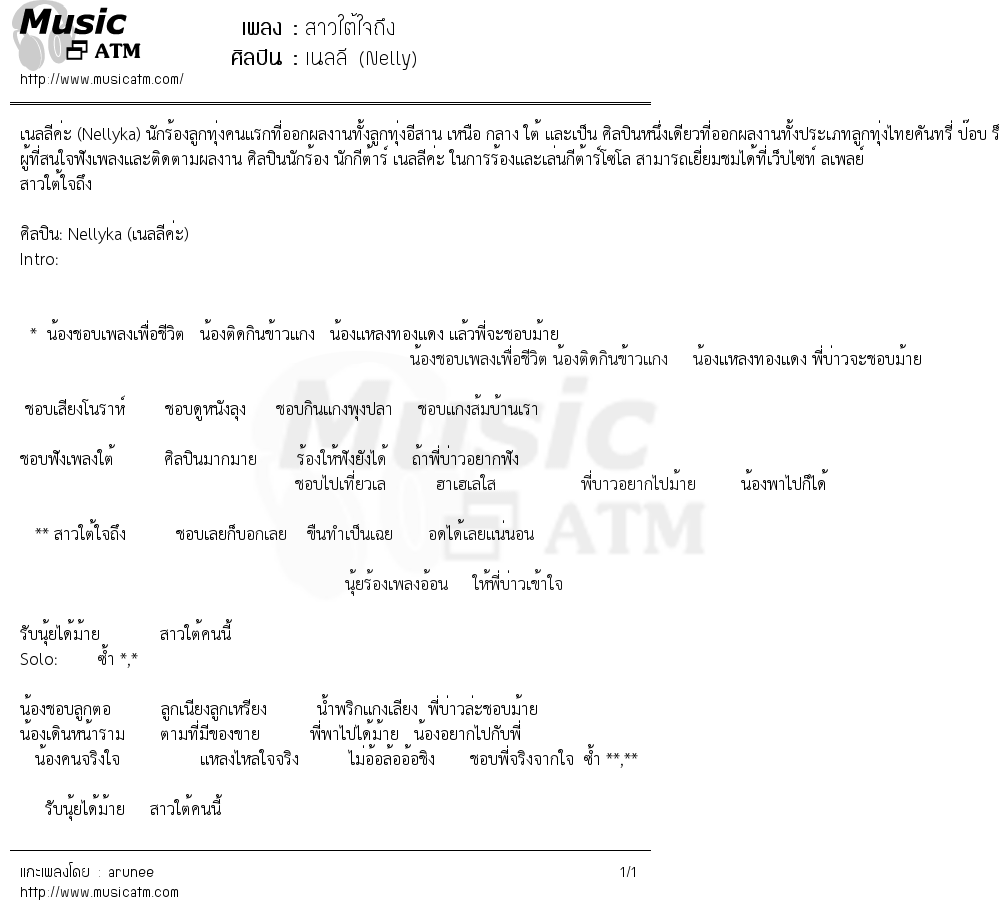 เนื้อเพลง สาวใต้ใจถึง - เนลลี (Nelly)