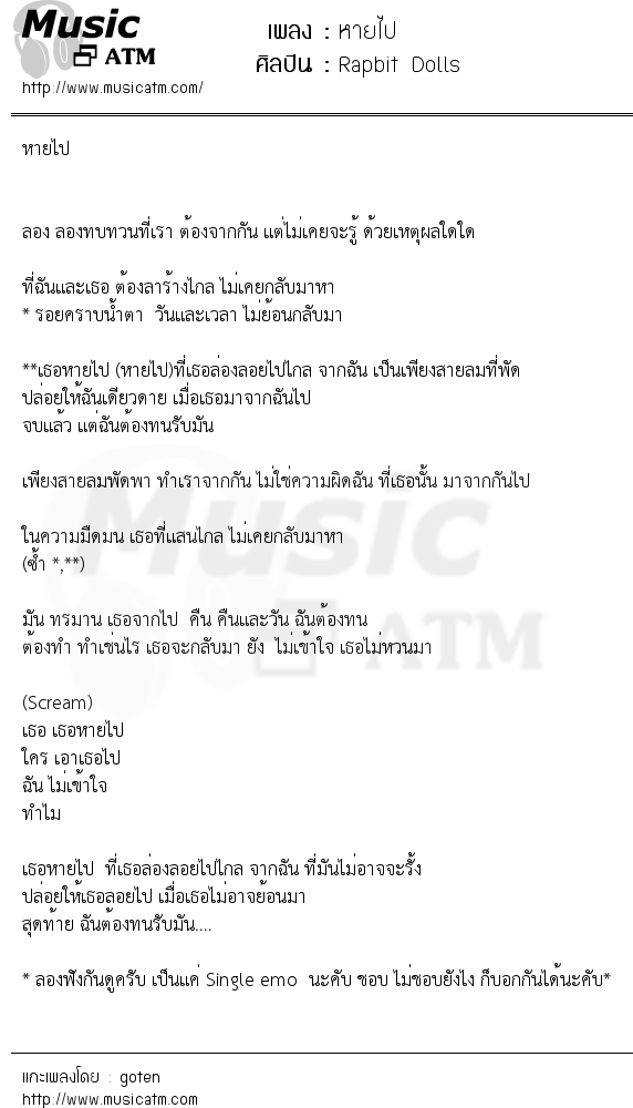 เธอหายไป ที่เธอล่องลอยไปไกล จากฉัน ที่มันไม่อาจจะรั้ง