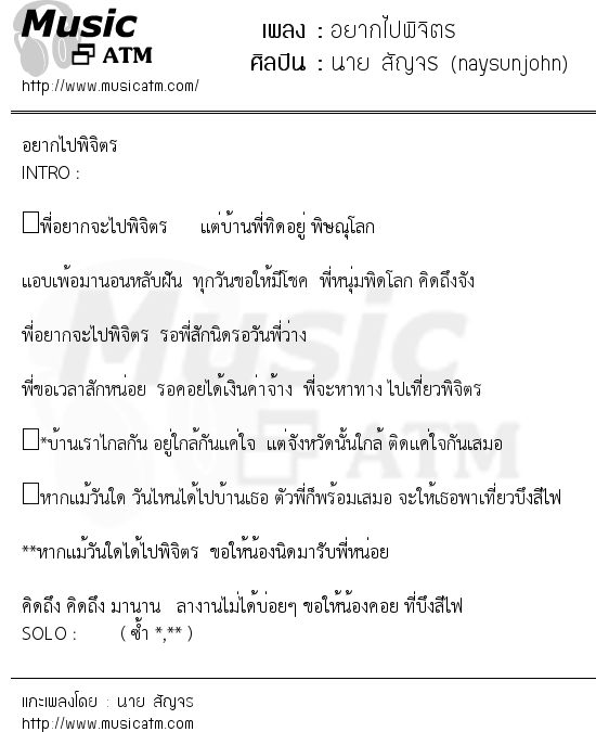 เนื้อเพลง อยากไปพิจิตร - นาย สัญจร (naysunjohn)