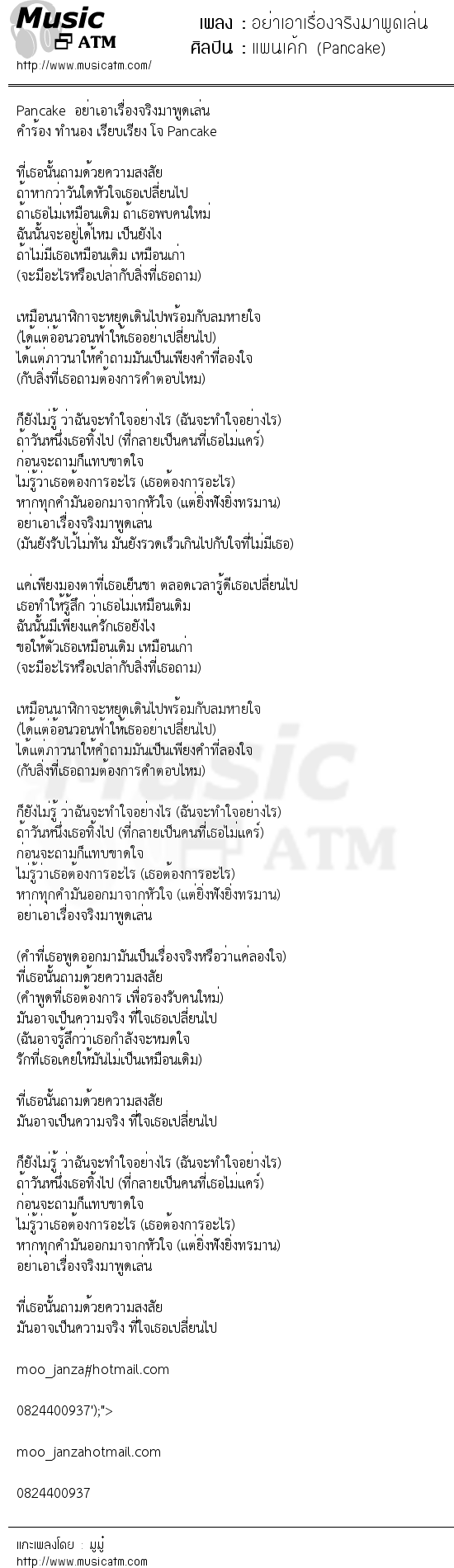 คำร้อง ทำนอง เรียบเรียง โจ Pancake