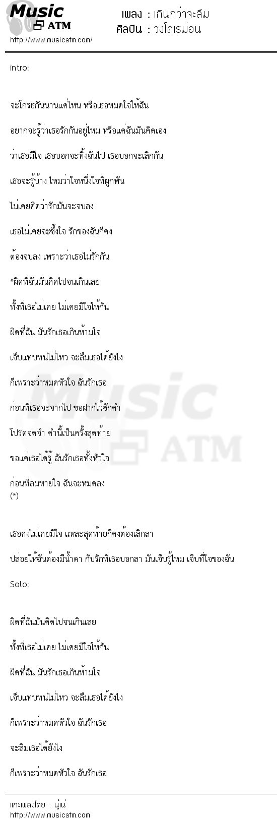 เนื้อเพลง เกินกว่าจะลืม - วงโดเรม่อน