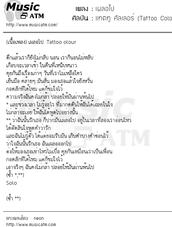 (เนื้อเพลง) เผลอไป  Tattoo olour