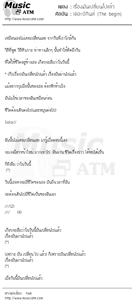 * (ก็)(เรื่อง)มันเปลี่ยนไปแล้ว เรื่องมันผ่านไปแล้ว
