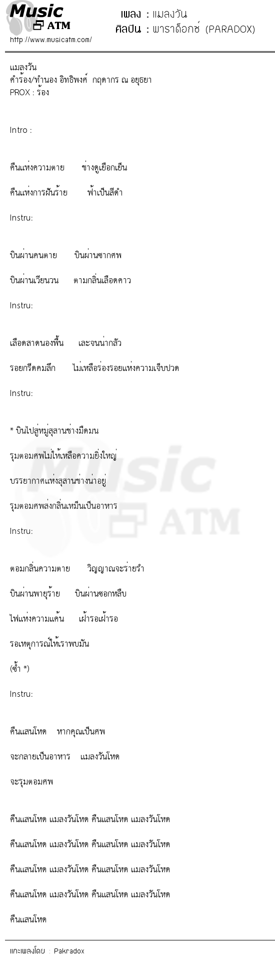 คำร้อง/ทำนอง อิทธิพงศ์ กฤดากร ณ อยุธยา
