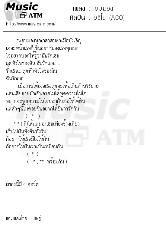 เนื้อเพลง แอบมอง - เอซีโอ (ACO)