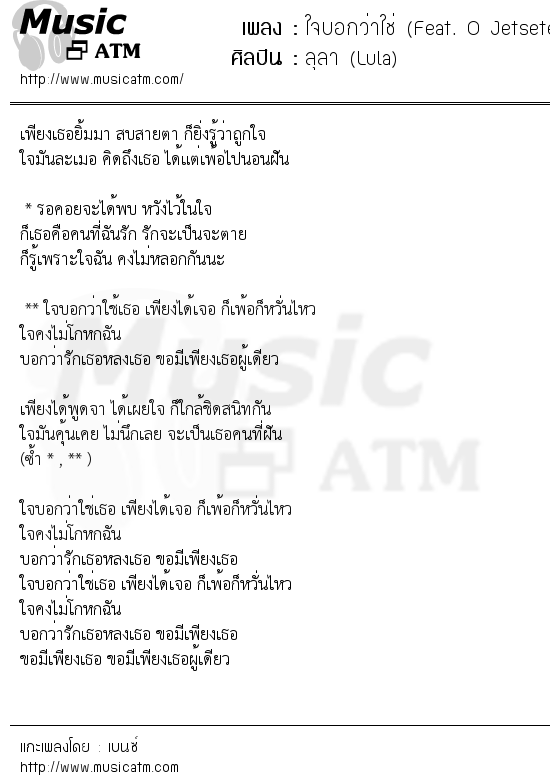 เนื้อเพลง ใจบอกว่าใช่ (Feat. O Jetseter) - ลุลา (Lula)