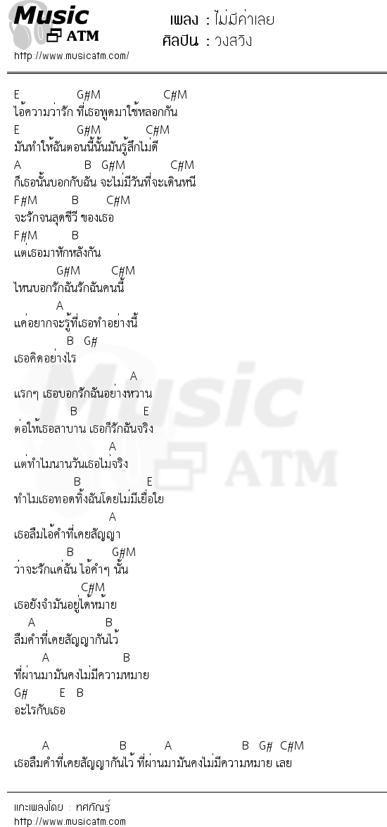 เธอลืมคำที่เคยสัญญากันไว้ ที่ผ่านมามันคงไม่มีความหมาย เลย