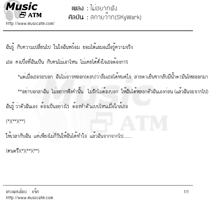 *แต่เมื่อเธอจะบอก ฉันไม่อาจหลอก(ตอบ)ว่าลืมเธอได้หมดใจ สายตาเย็นชากลับมีน้ำตามันไหลออกมา