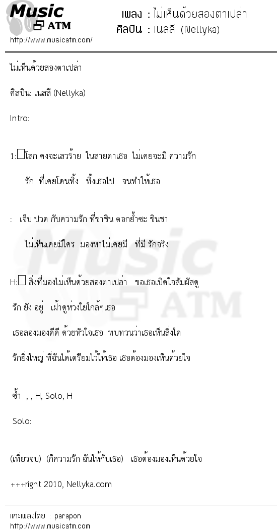 เนื้อเพลง ไม่เห็นด้วยสองตาเปล่า - เนลลี (Nellyka)
