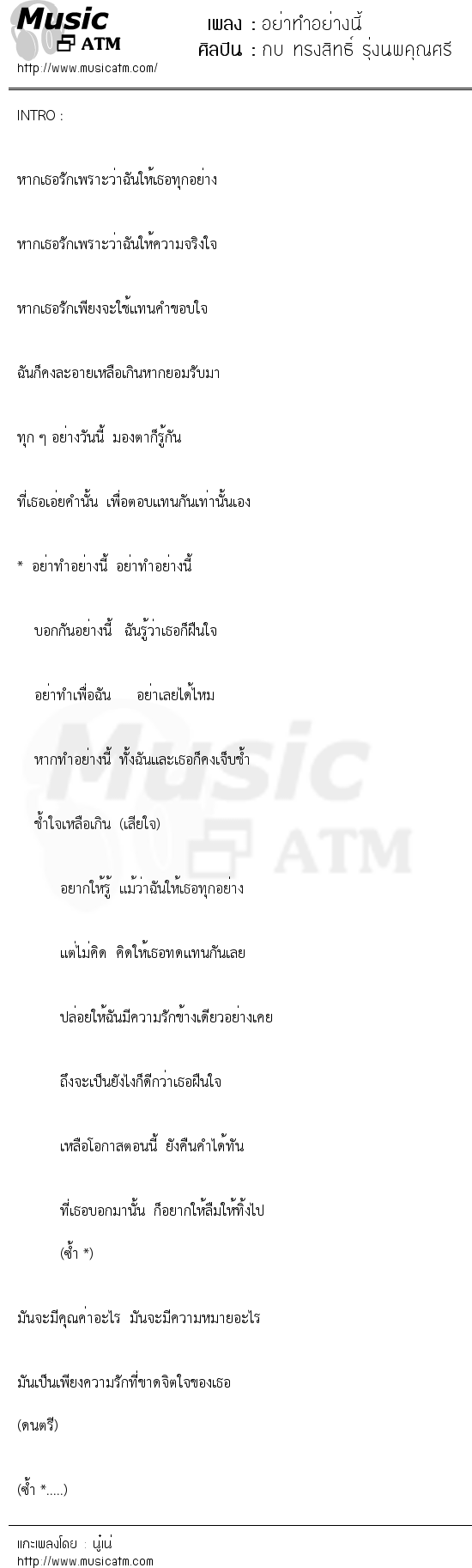 เนื้อเพลง อย่าทำอย่างนี้ - กบ ทรงสิทธิ์ รุ่งนพคุณศรี