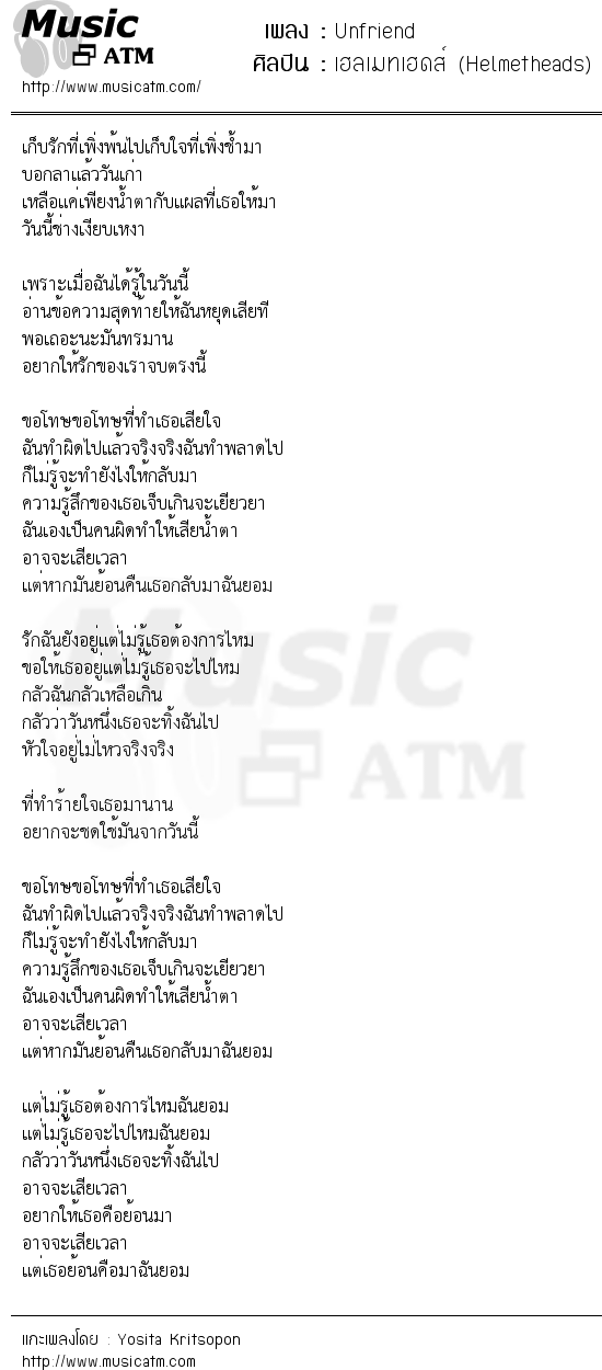 เนื้อเพลง Unfriend - เฮลเมทเฮดส์ (Helmetheads)