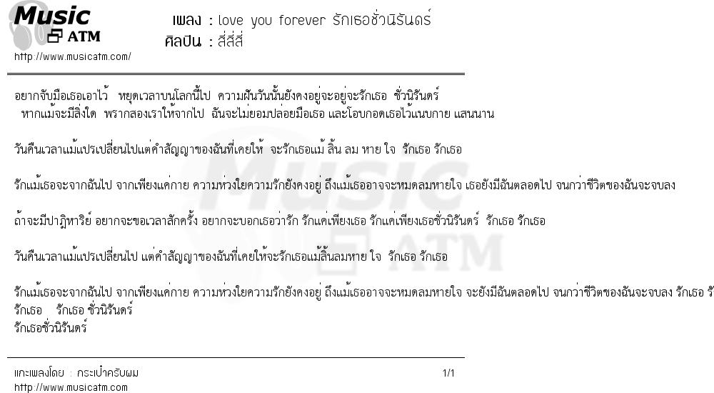 เนื้อเพลง love you forever รักเธอชั่วนิรันดร์ - สี่สี่สี่