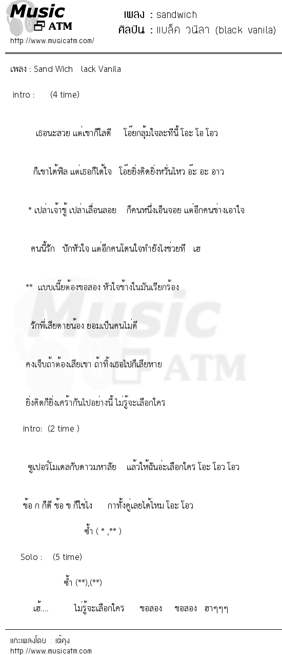 เพลง : Sand Wich lack Vanila